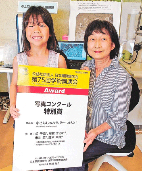 日本顕微鏡学会第75回学術講演会 写真コンクール(2019.6.18 in名古屋)において、椋千晶さんの作品「小さなしあわせ、み〜つけた!」が特別賞を受賞しました。